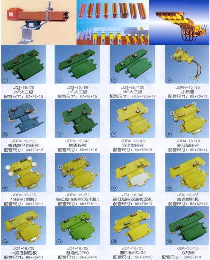 選用滑觸線集電器的時(shí)候,首選集電器最好是考慮和滑觸線相配套,不要亂用集電器,否則會(huì)影響行車的正常運(yùn)行,嚴(yán)重了會(huì)燒壞滑觸線。集電器上面的靴片是由含銅碳基壓而成的,購(gòu)買后要檢查與滑線的吻合型。由于集電器本身屬于易耗品,長(zhǎng)期使用會(huì)磨損靴片,所以要定期檢查,集電器上面靴片的磨損程度,并定期更換。