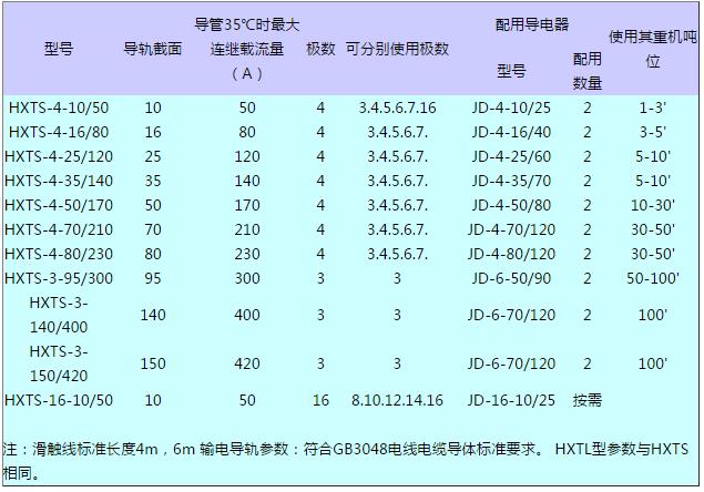 注:1、滑觸線標(biāo)準(zhǔn)長度:6m。 |